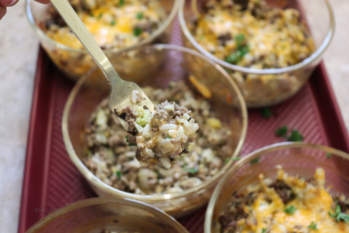 Looking for a hearty, comforting dish that’s perfect for meal prep? These Beefy Casserole Bakes are a satisfying, all-in-one recipe packed with flavor and protein. Featuring Ben’s Original Long Grain & Wild Rice, savory lean ground beef, and tender vegetables, this casserole comes together with a creamy, homemade sauce made from beef broth, butter, milk, and flour. With the added texture of cauliflower and a touch of onion for depth, it’s an easy and delicious make-ahead option for busy weeknights or a filling family dinner.