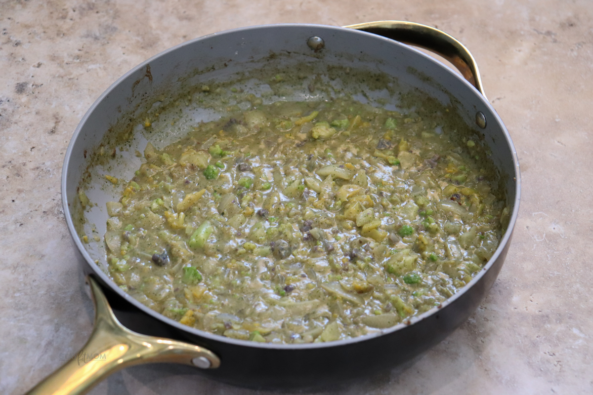 - In the same pan you cooked the beef(don’t clean it), melt the butter. Add the onions and cauliflower. Cook a few minutes until the onions are translucent.