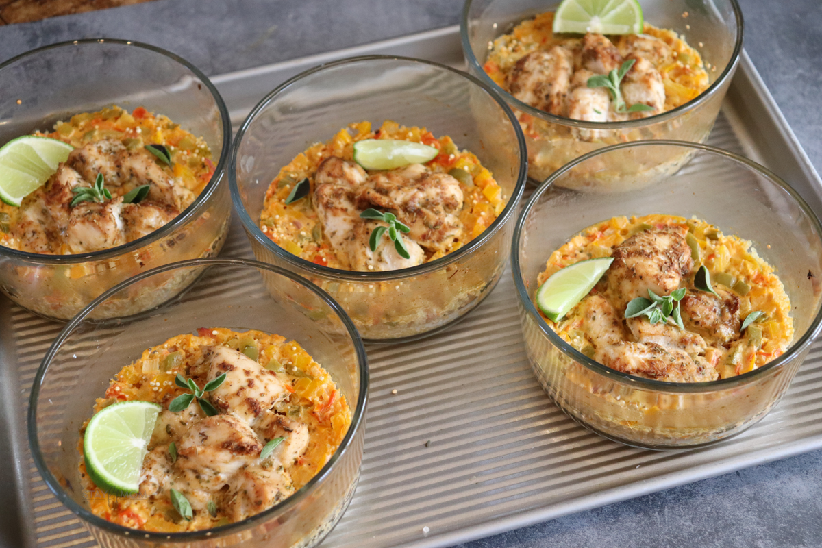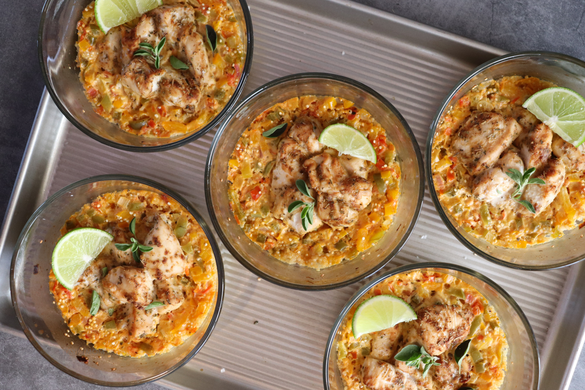 Chicken bakes of any kind are usually a big hit among those who like to meal prep. These Cajun Quinoa Chicken Bakes are another delicious meal to add to your list of meal prep recipes! Loaded with chicken, quinoa, veggies and cajun flavors you’re going to love having this meal ready for a quick meal throughout the week!