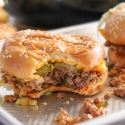 All the Flavor of a Cheeseburger, No Grill Required! If you love a good cheeseburger but need something fast, macro-friendly, and easy to make on a busy weeknight — these Cheeseburger Sloppy Joes are for you. These are everything you love about a classic burger: juicy beef, pickles, tangy sauce, and tons of flavor — served on a bun for maximum deliciousness.