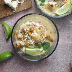 This creamy Chicken Street Corn Chowder is one of those recipes that checks all the boxes for busy weeks: high-protein, cozy, flavorful, and perfect for meal prep. It’s lightly smoky from the chipotle chili, naturally creamy without being heavy, and packed with veggies and tender chicken in every bite.