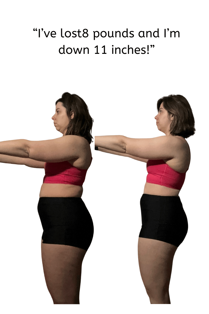 Ashley: In total I’ve lost 8lbs and 11”. The most being in my waist and hips.