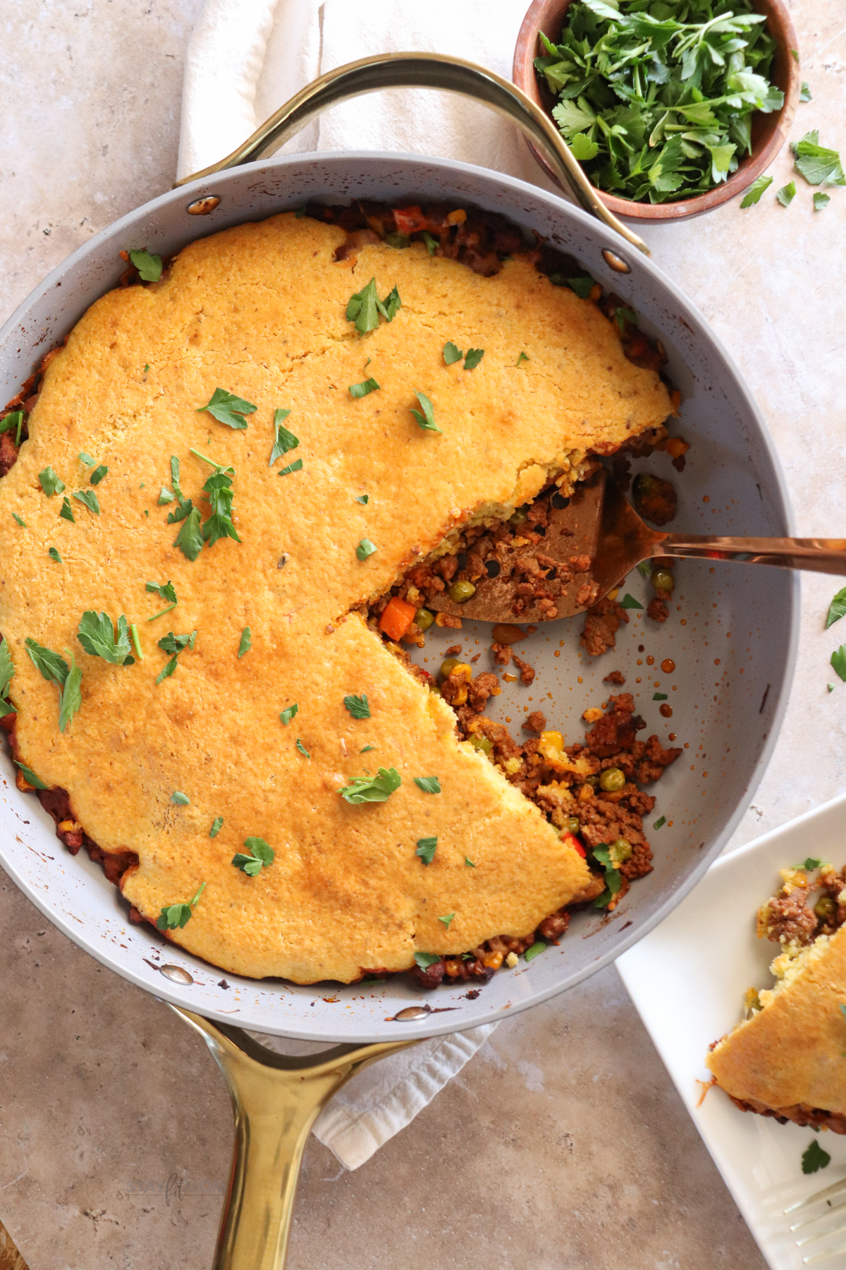 - Find in MyFitnessPal or the MacrosFirst app by searching for, “Stay Fit Mom Cowboy Cornbread Casserole.”