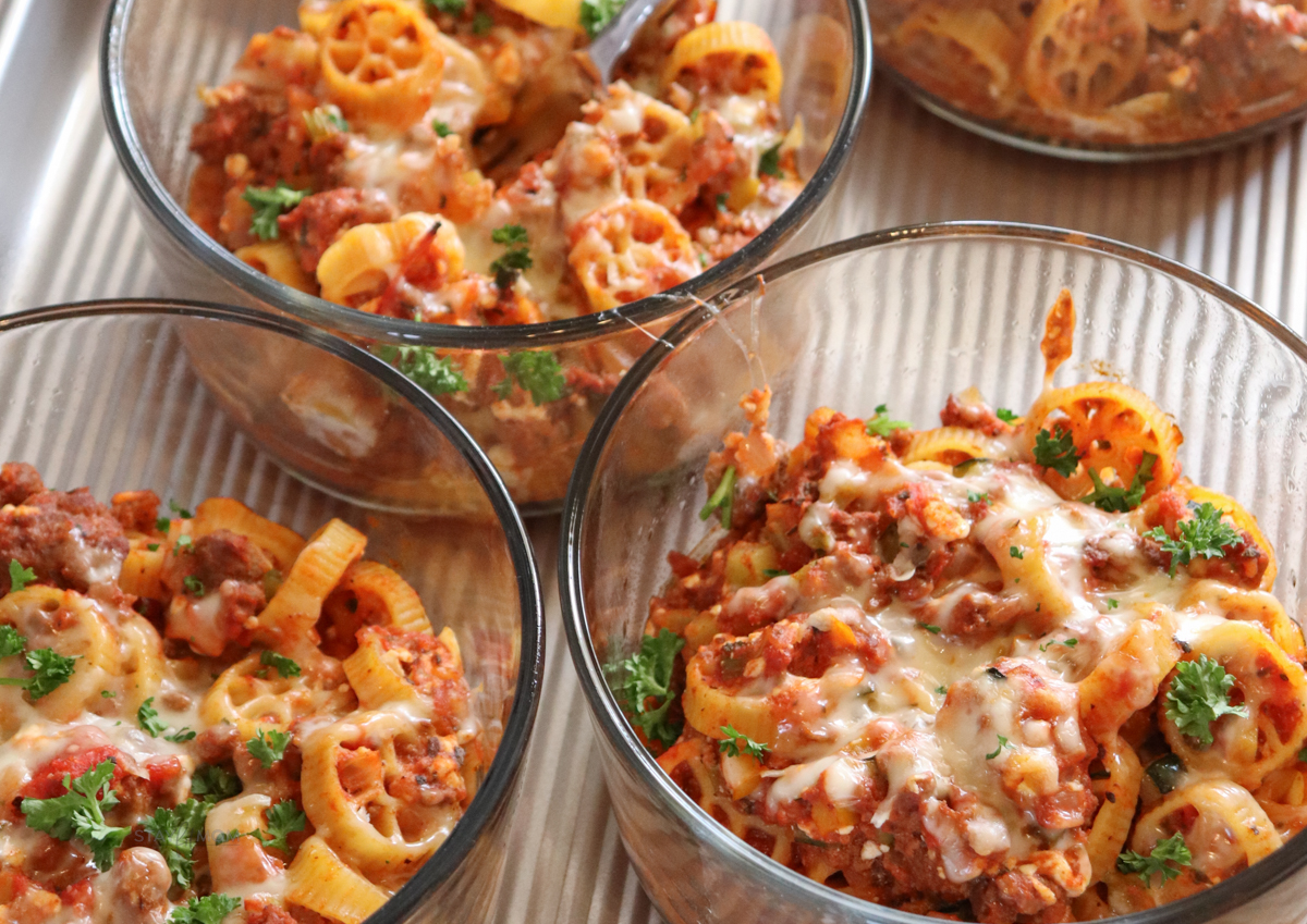 Today I’m bringing you a Stay Fit Mom fan favorite recipe, but this time in Meal Prep form. Our Dump Lasagna is one of those recipes that’s so quick and easy to throw together and is something the whole family will love! Now, you can enjoy it in the meal prep version and have your lunch ready for a whole week! This recipe has all the things and flavors you love about lasagna: pasta, marinara, cheeses, and some added veggies for good measure. This one is hearty and delicious and will keep you satisfied until dinner!