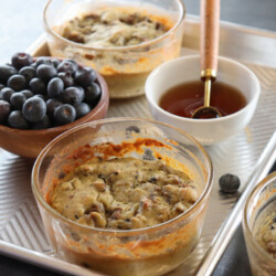 You can reheat these yummy pancake bowls by popping them in the microwave for about 1 minutes. Top with sugar free syrup and/or fresh blueberries!