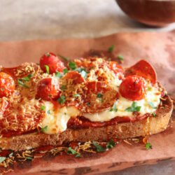 While this Sourdough Pizza Toast is best fresh, you can prep the ingredients ahead of time and assemble just before air frying for a super quick meal.