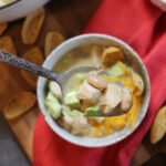 Crockpot Directions: Transfer cooked chicken to crockpot and add remaining ingredients. Cook on low 4 hours.